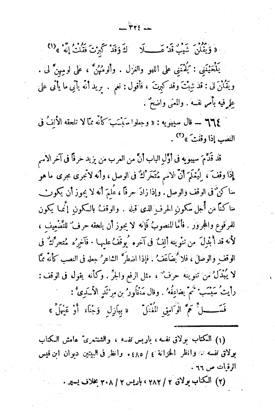 قد قدم سيبويه في أول الباب أن من العرب من يزيد حرفاً في آخر الاسم إذا وقف، ليُعلم أن الاسم متحرك في الوصل، وأنه لا يجري مجرى ما هوساكن في الوقف والوصل، وإذا زاد حرفاً علم أنه لا يجوز أن يكون ساكناً من أجل سكون الحرف الذي قبله، والوقف بالسكون إنما يكون للمرفوع والمجرور.