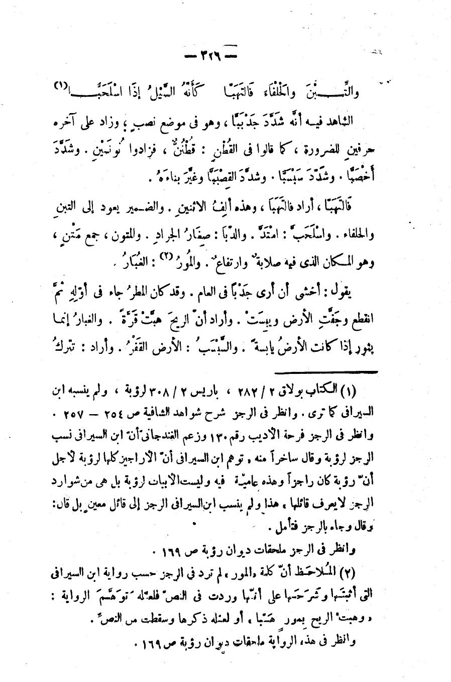 الشاهد فيه أنه شدد (جدبّا) وهوفي موضع نصب، وزاد على آخره حرفين للضرورة كما قالوا في القطن (قطننّ) فزادوا نونين. وشدد (أخصبّا) وشدد (سبسبّا) وشدد (القصببّ) وغير بناءه.