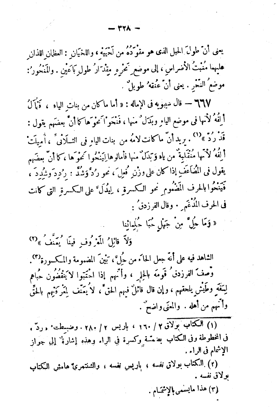 كما أن بعضهم يقول في المضاعف - إذا كان على وزن فعِل نحو رُدَ وشُدَ رُدّ وشُدّ، فينحو بالحرف المضموم نحوالكسرة، ليدل على الكسرة التي كانت في الحرف المدغم. وقال الفرزدق: