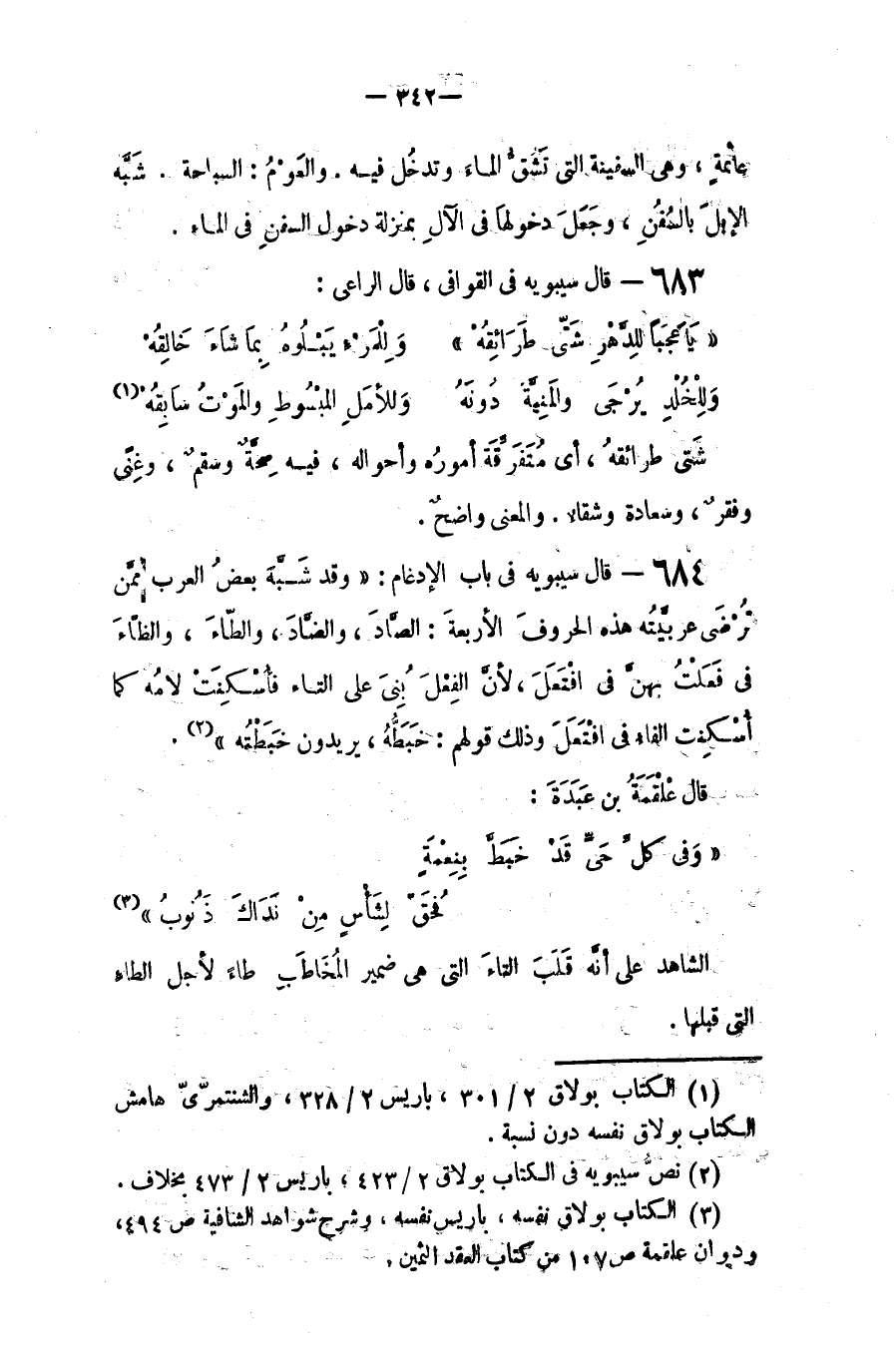 قال سيبويه في باب الإدغام: (وقد شبه بعض العرب ممن تُرضى عربيته هذه الحروف الأربعة: الصاد والضاد والطاء والظاء في (فعلتُ) بهن في (افتعل). لأن الفعل بني على التاء فأسكنت لامه كما أسكنت الفاء في (افتعل) وذلك قولهم: خبطه، يريدون: خبطْته). قال علقمة ابن عَبَدة: