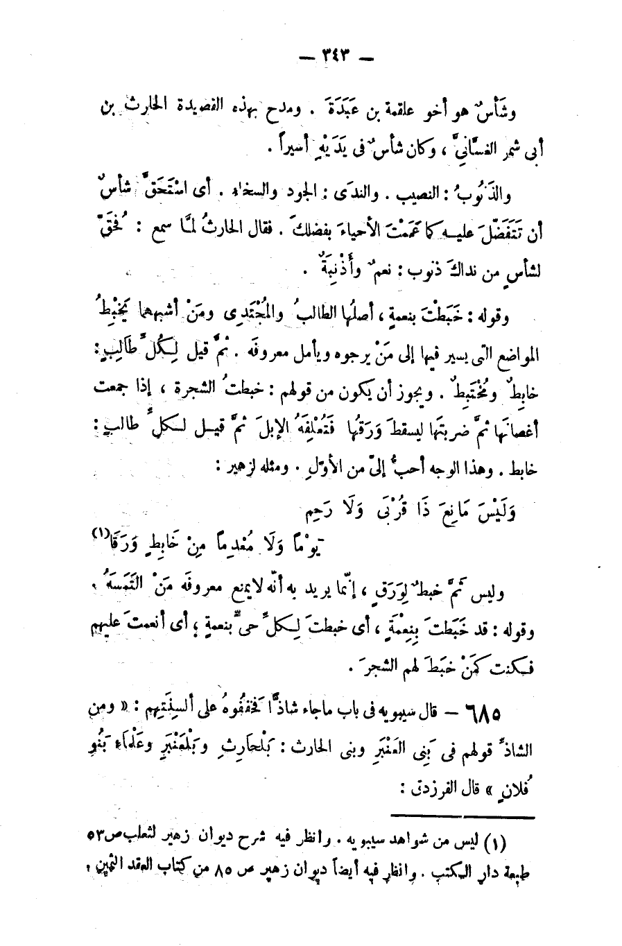 أي اسْتحق شأس أن تتفضل عليه، كما عممت الأحياء بفضلك. فقال الحارث لما سمع: (فحق لشأس من نداك ذنوب): نعم وأذْنِبة.