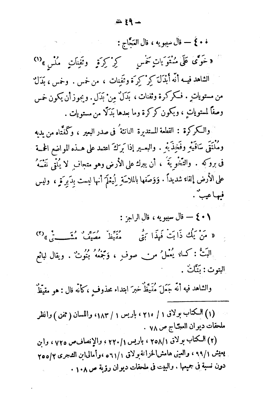 الشاهد فيه أنه أبدل (كركرةْ وثفنات) من (خمسّ) و (خمس) بدل من (مستوياتٍ). فكركرةْ وثفنات بدل من بدل. ويجوز أن يكون (خمس) وصفاً لـ (مستويات) ويكون (كركرة) وما بعدها بدلاً من (مستويات).