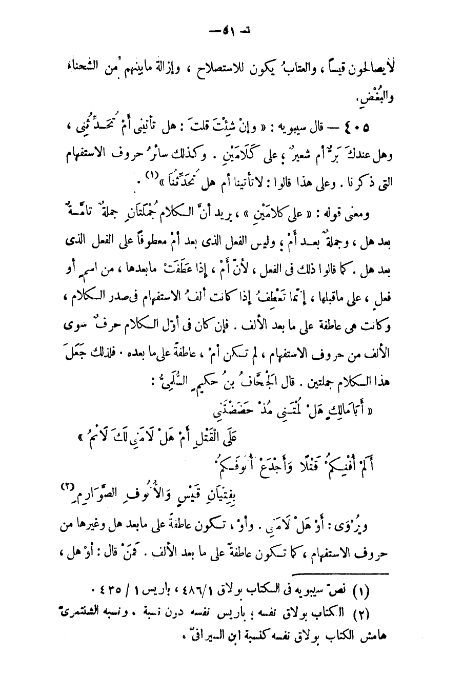 قال سيبويه: (وإن شئت قلت: هل تأتيني أم تحدثني، وهل عندك برُّ أم شعير؛ على كلامين، وكذلك سائر حروف الاستفهام التي ذكرنا، وعلى هذا قالوا: هل تأتينا أم هل تحدثنا).