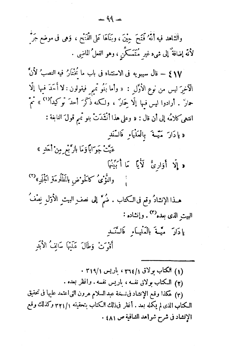هذا الإنشاد وقع في الكتاب، ضم إلى نصف البيت الأول نصف الذي بعده. وإنشاده: