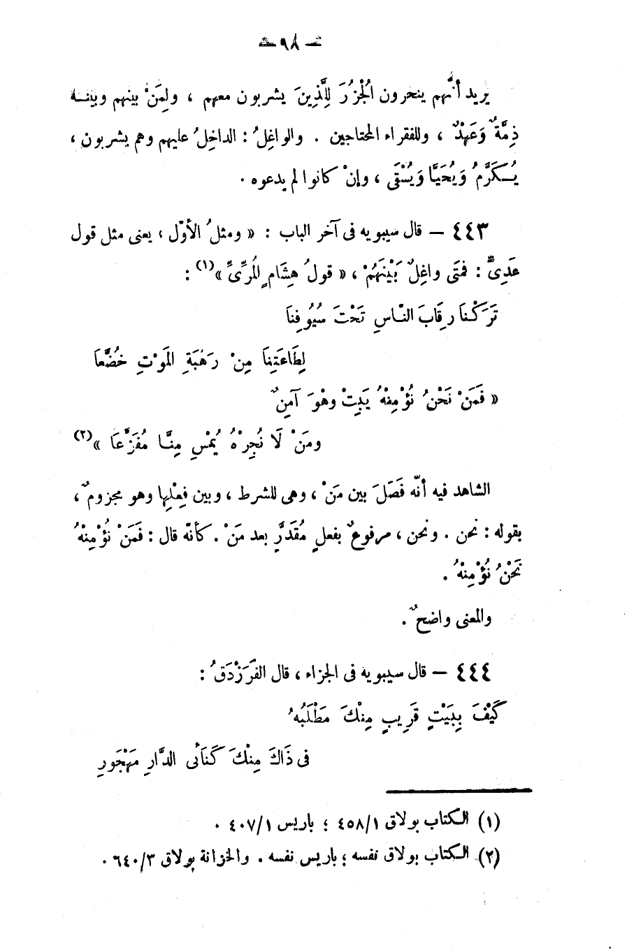 قال سيبويه في آخر الباب: ومثل الأول - يعني مثل قول عدي (فمتى واغل ينبهم):