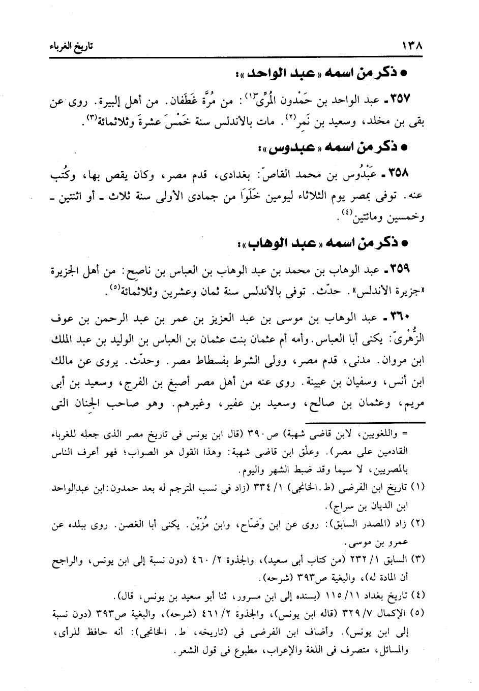359- عبد الوهاب بن محمد بن عبد الوهاب بن العباس بن ناصح: من أهل الجزيرة «جزيرة الأندلس» . حدّث. توفى بالأندلس سنة ثمان وعشرين وثلاثمائة «5» .