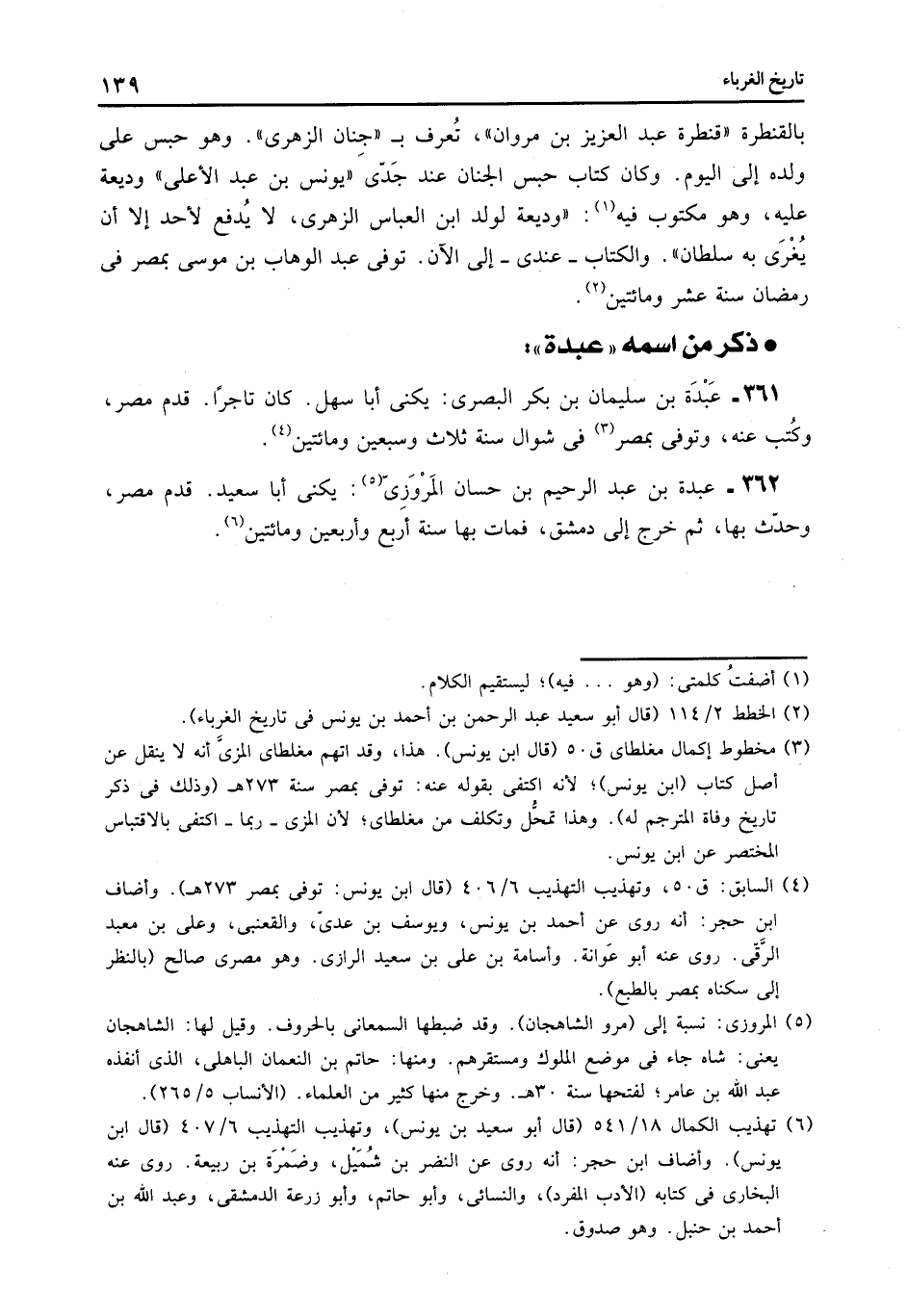 361- عبدة بن سليمان بن بكر البصرى: يكنى أبا سهل. كان تاجرا. قدم مصر، وكتب عنه، وتوفى بمصر «3»