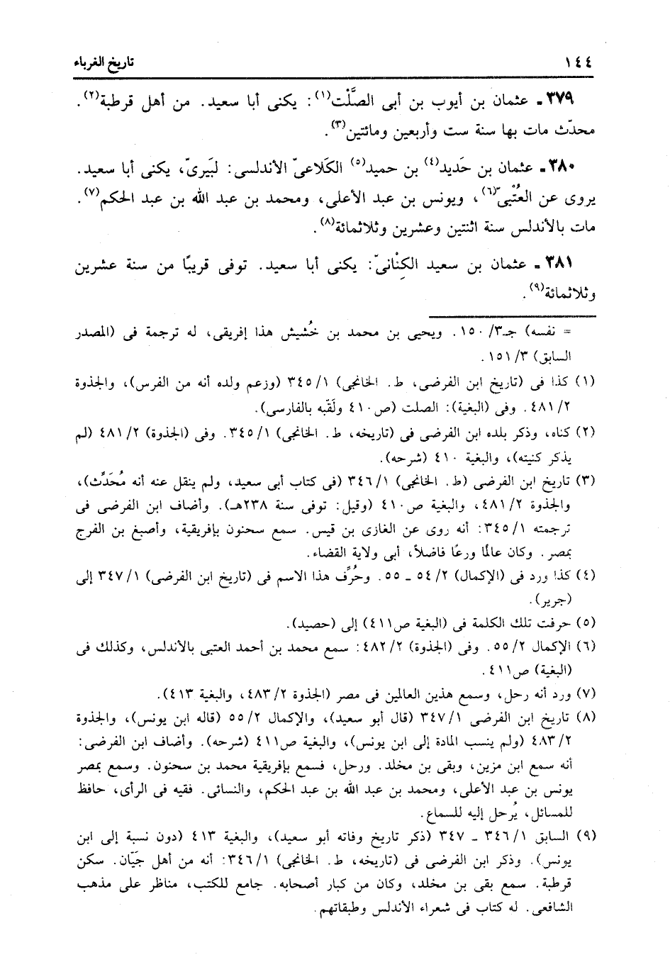 381- عثمان بن سعيد الكنانىّ: يكنى أبا سعيد. توفى قريبا من سنة عشرين وثلاثمائة «9» .