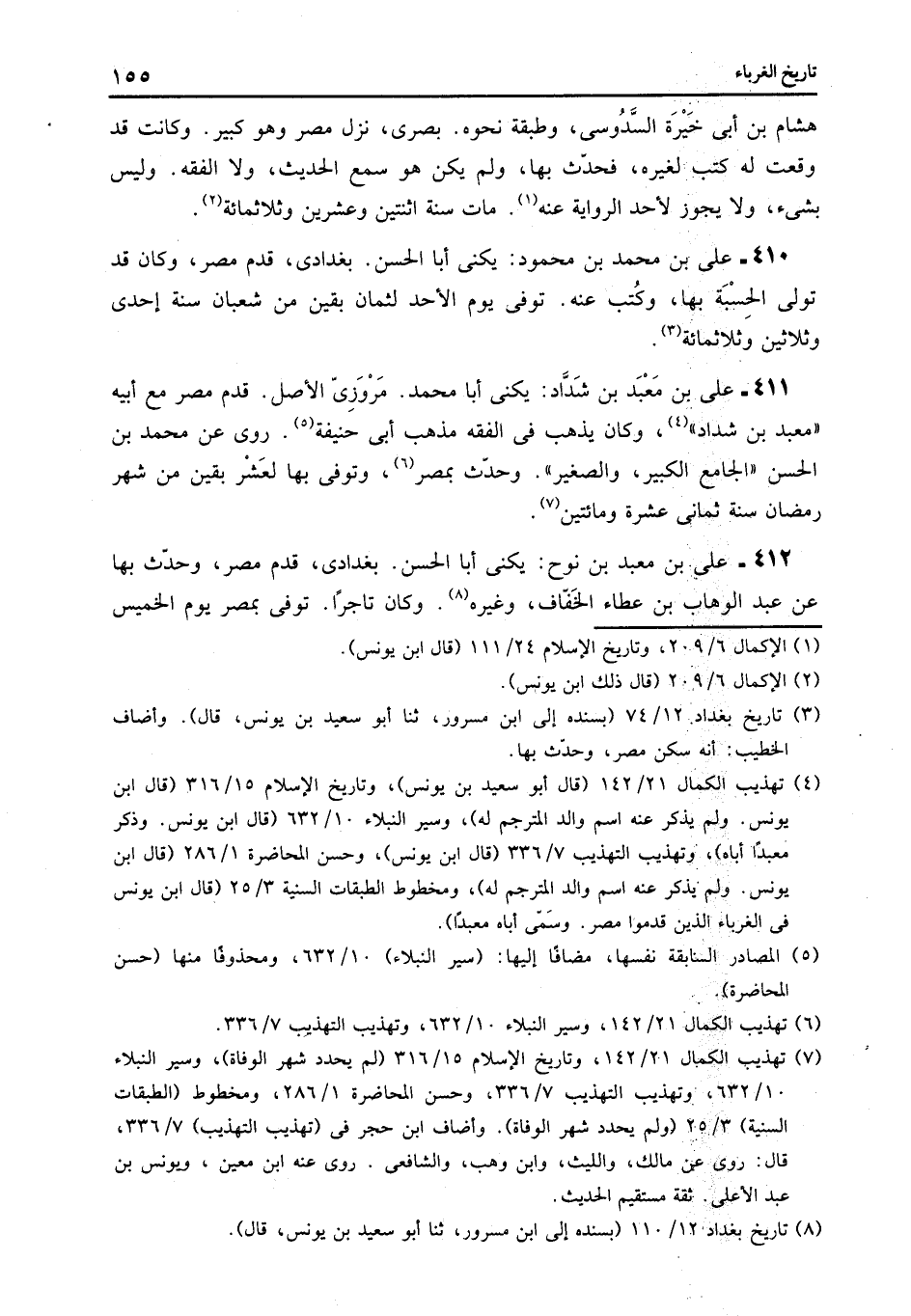 412- على بن معبد بن نوح: يكنى أبا الحسن. بغدادى، قدم مصر، وحدّث بها عن عبد الوهاب بن عطاء الخفّاف، وغيره «8» . وكان تاجرا. توفى بمصر يوم الخميس