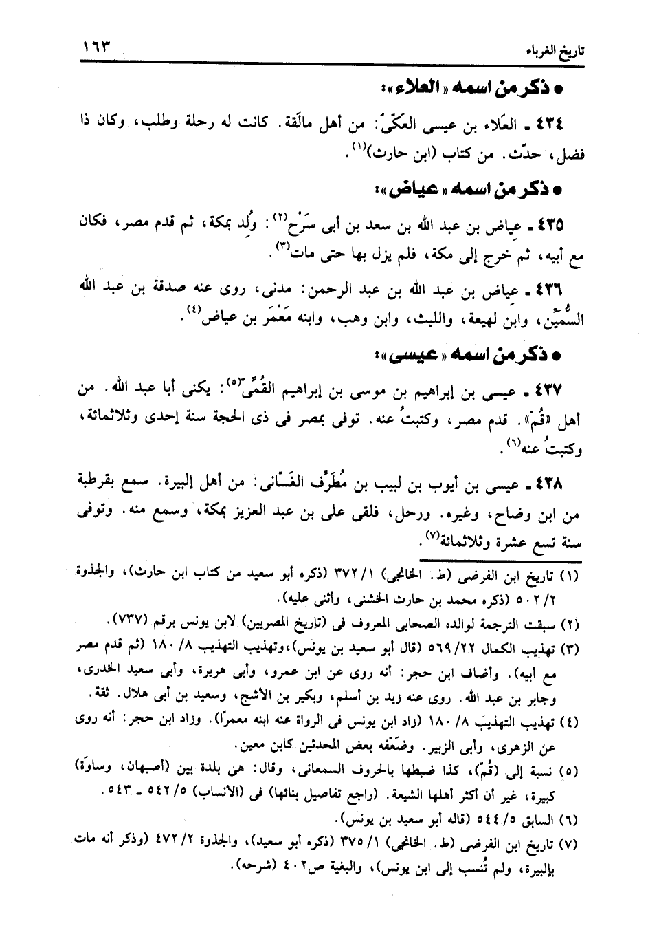 437- عيسى بن إبراهيم بن موسى بن إبراهيم القمّىّ «5» : يكنى أبا عبد الله. من أهل «قمّ» . قدم مصر، وكتبت عنه. توفى بمصر فى ذى الحجة سنة إحدى وثلاثمائة، وكتبت عنه «6» .