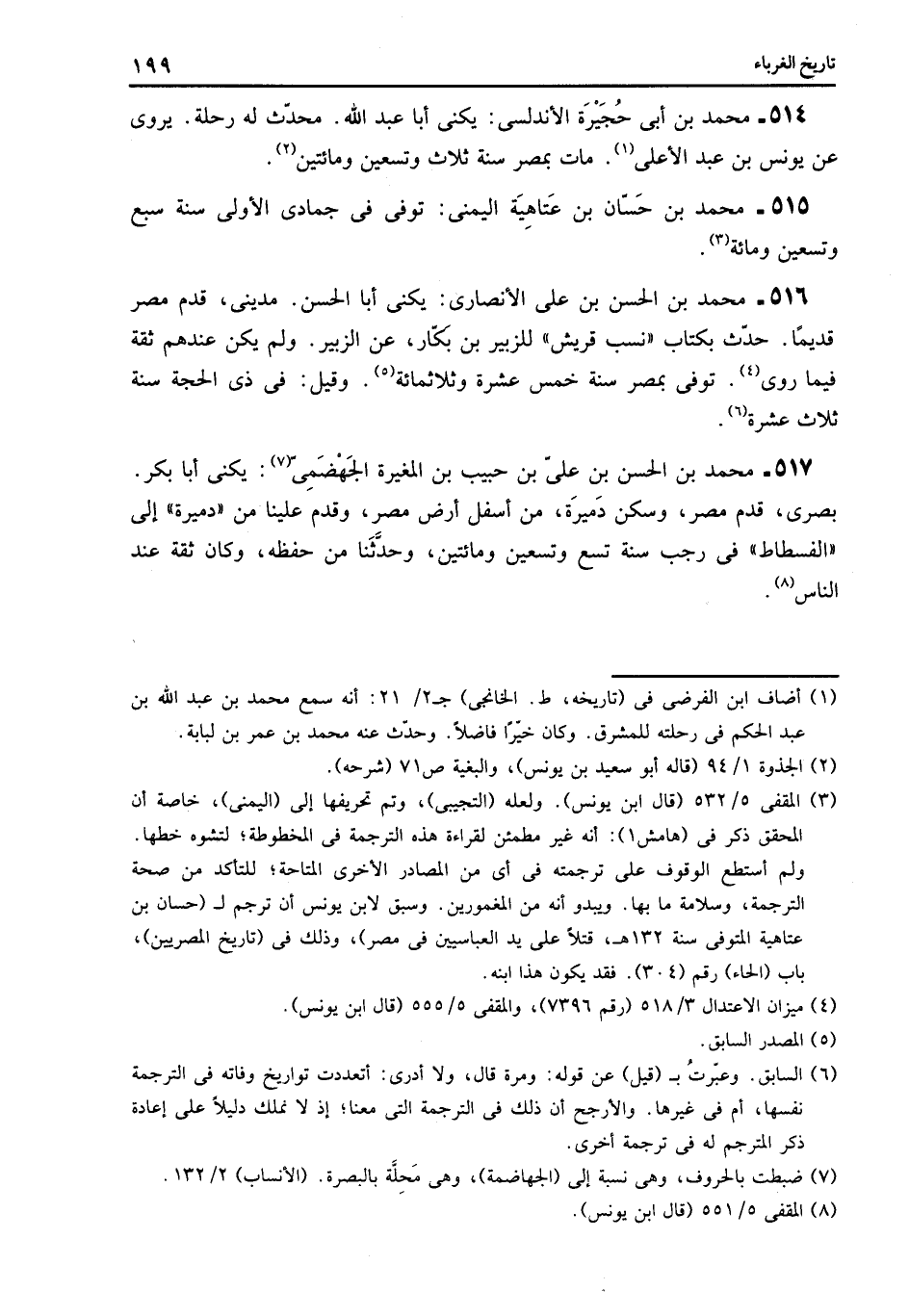 515- محمد بن حسّان بن عتاهية اليمنى: توفى فى جمادى الأولى سنة سبع وتسعين ومائة «3» .