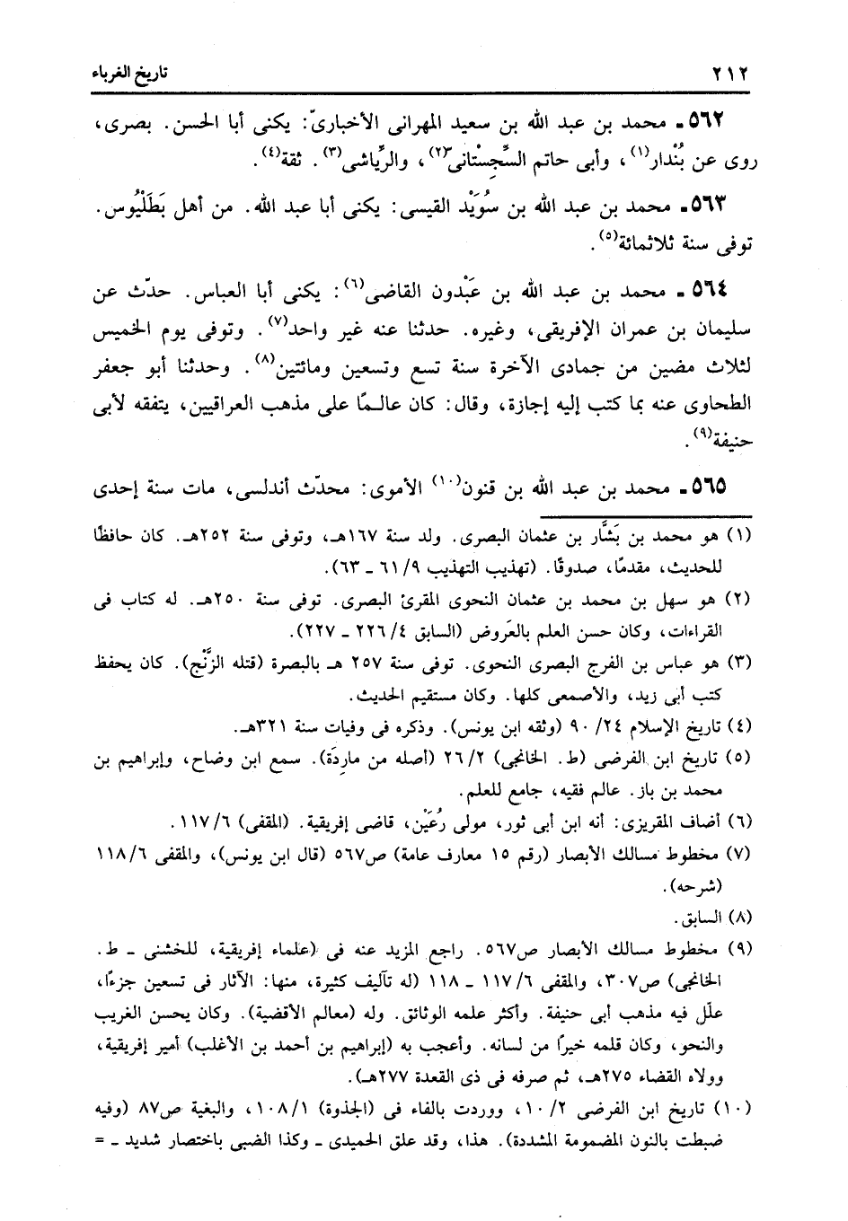 565- محمد بن عبد الله بن قنون «10» الأموى: محدّث أندلسى، مات سنة إحدى