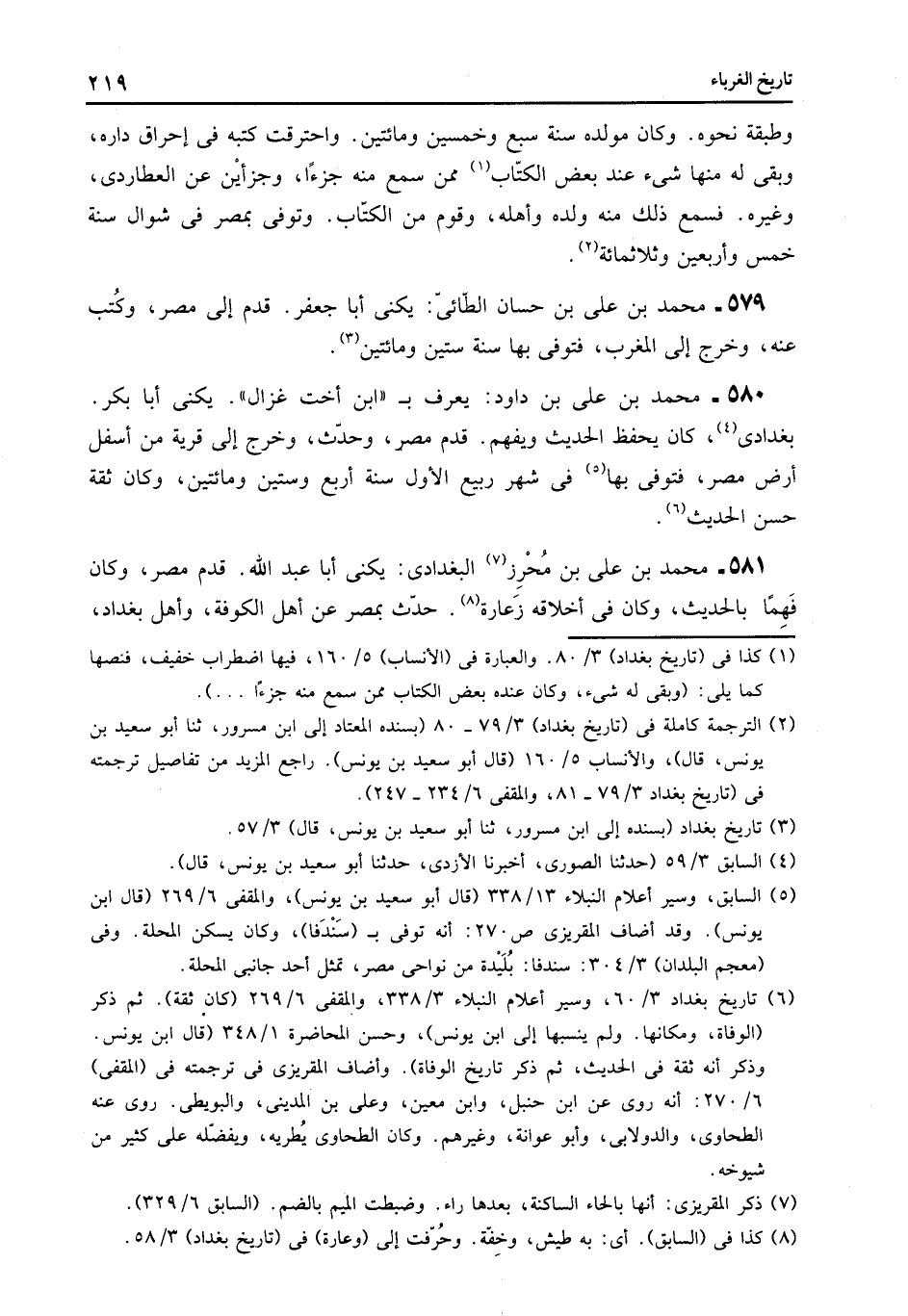 580- محمد بن على بن داود: يعرف ب «ابن أخت غزال» . يكنى أبا بكر.