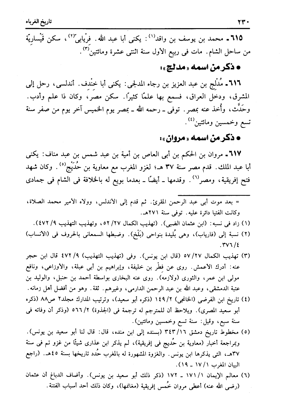 615- محمد بن يوسف بن واقد «1» : يكنى أبا عبد الله. فريابىّ «2» ، سكن قيساريّة من ساحل الشام. مات فى ربيع الأول سنة اثنتى عشرة ومائتين «3» .