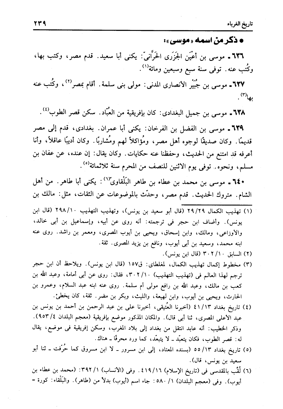 638- موسى بن جميل البغدادى: كان بإفريقية من العبّاد. سكن قصر الطوب «4» .