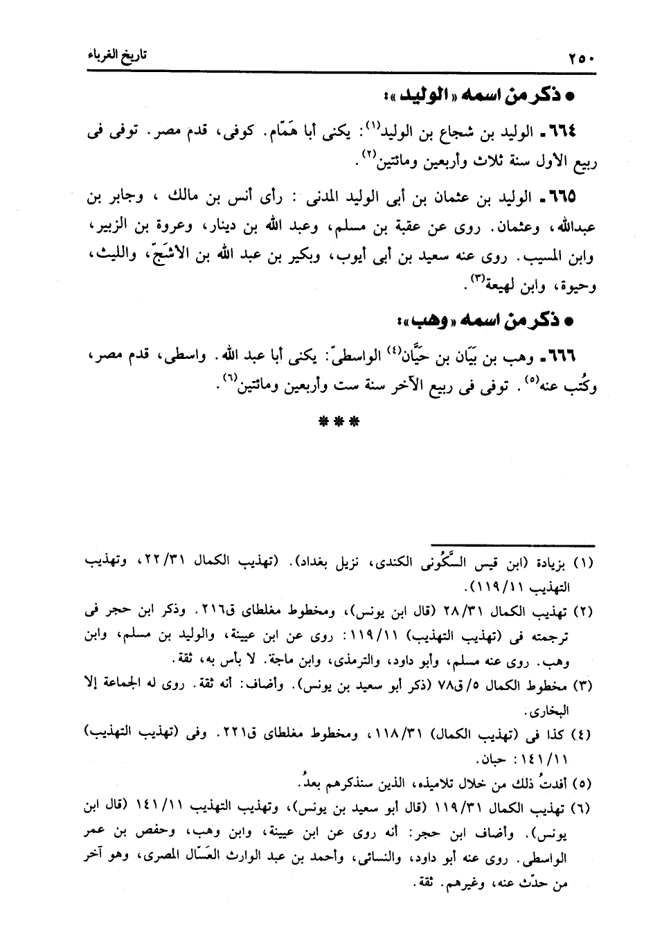 666- وهب بن بيان بن حيّان «4» الواسطىّ: يكنى أبا عبد الله. واسطى، قدم مصر، وكتب عنه «5» . توفى فى ربيع الآخر سنة ست وأربعين ومائتين «6» .