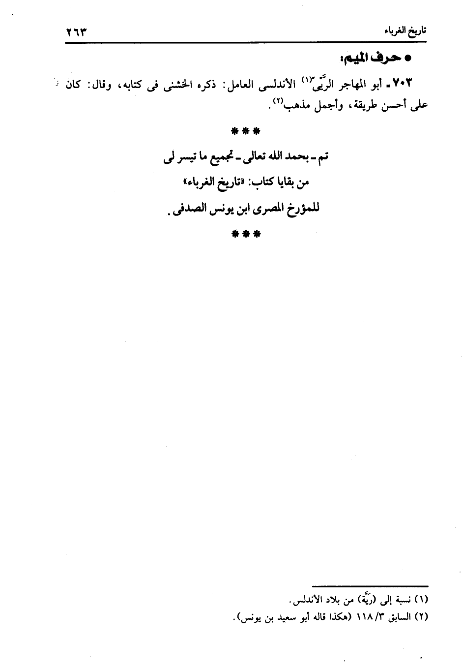 *** تم- بحمد الله تعالى- تجميع ما تيسر لى من بقايا كتاب: «تاريخ الغرباء» للمؤرخ المصرى ابن يونس الصدفى.