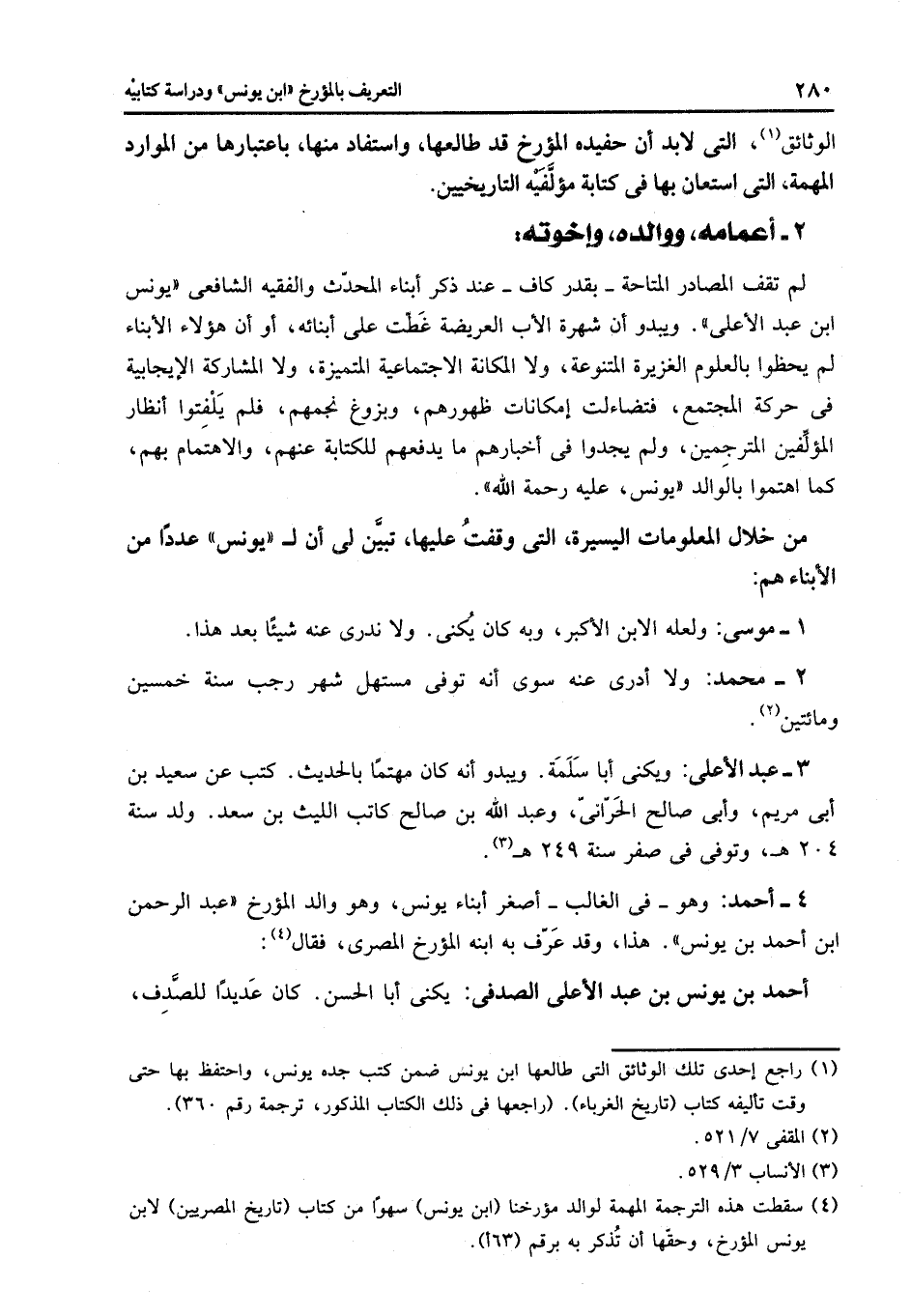 4- أحمد: وهو- فى الغالب- أصغر أبناء يونس، وهو والد المؤرخ «عبد الرحمن ابن أحمد بن يونس» . هذا، وقد عرّف به ابنه المؤرخ المصرى، فقال «4» :