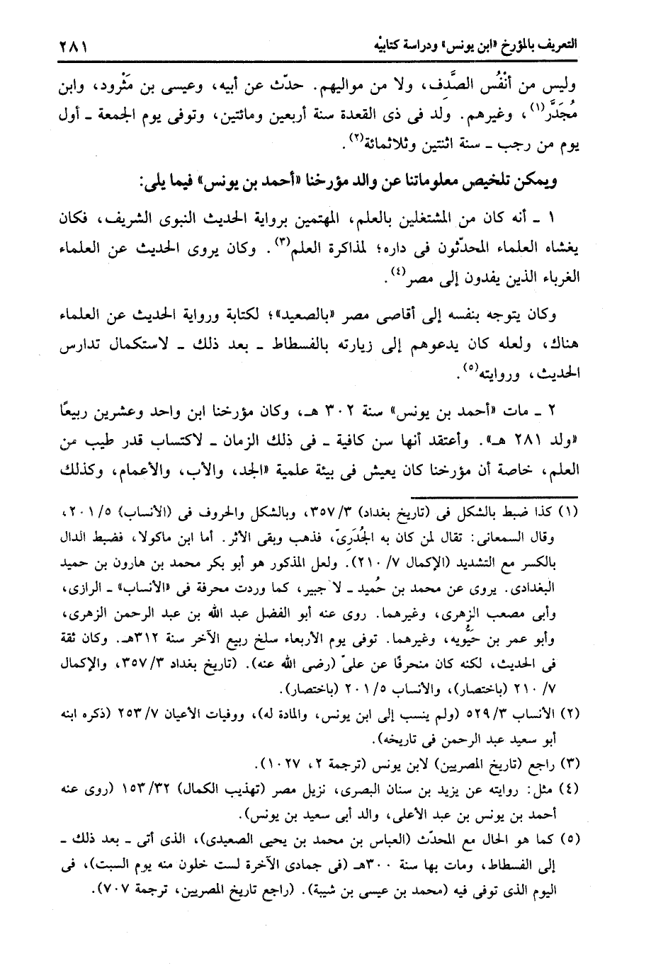 2- مات «أحمد بن يونس» سنة 302 هـ، وكان مؤرخنا ابن واحد وعشرين ربيعا «ولد 281 هـ» . وأعتقد أنها سن كافية- فى ذلك الزمان- لاكتساب قدر طيب من العلم، خاصة أن مؤرخنا كان يعيش فى بيئة علمية «الجد، والأب، والأعمام، وكذلك