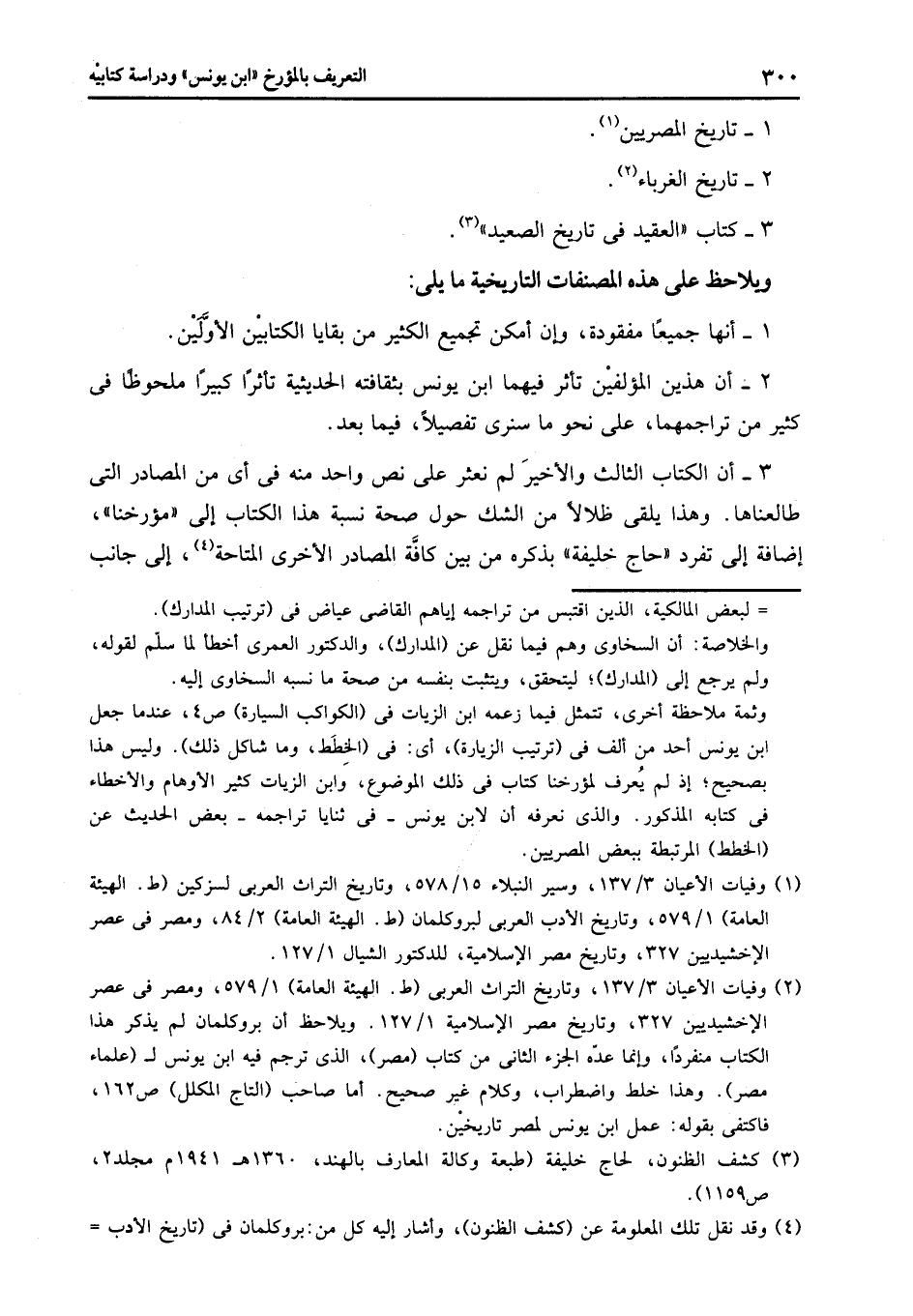 3- أن الكتاب الثالث والأخير لم نعثر على نص واحد منه فى أى من المصادر التى طالعناها. وهذا يلقى ظلالا من الشك حول صحة نسبة هذا الكتاب إلى «مؤرخنا» ، إضافة إلى تفرد «حاج خليفة» بذكره من بين كافّة المصادر الأخرى المتاحة «4» ، إلى جانب