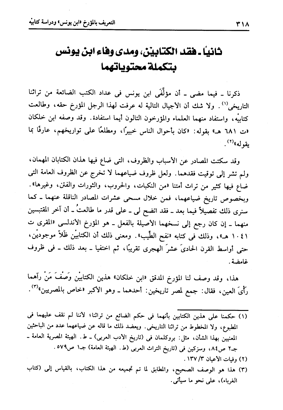 وبخصوص تاريخ ضياعهما، فمن خلال مسحى عشرات المصادر الناقلة عنهما- كما سنرى ذلك تفصيلا فيما بعد- فقد اتضح لى- على قدر ما طالعت- أن آخر المقتبسين منهما- إن كان رجع إلى نسخهما الأصيلة بالفعل- هو المؤرخ الأندلسى «المقرى ت 1041 هـ» ، وذلك فى كتابه «نفح الطّيب» . ومعنى ذلك أن الكتابين ظلّا موجودين، حتى أواسط القرن الحادى عشر الهجرى تقريبا، ثم اختفيا- بعد ذلك- فى ظروف غامضة.