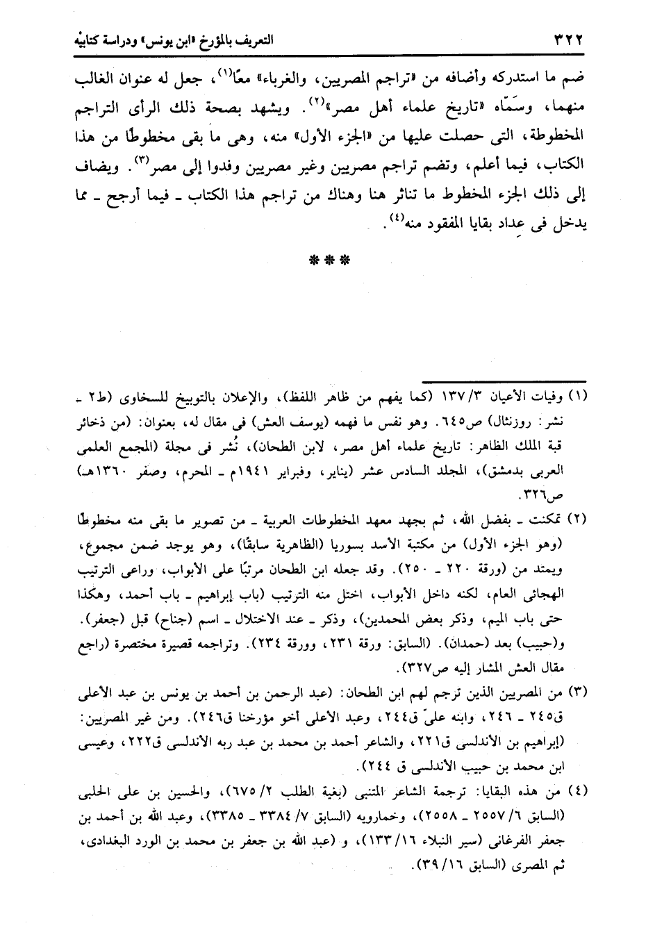 ضم ما استدركه وأضافه من «تراجم المصريين، والغرباء» معا «1» ، جعل له عنوان الغالب منهما، وسمّاه «تاريخ علماء أهل مصر» «2» . ويشهد بصحة ذلك الرأى التراجم المخطوطة، التى حصلت عليها من «الجزء الأول» منه، وهى ما بقى مخطوطا من هذا الكتاب، فيما أعلم، وتضم تراجم مصريين وغير مصريين وفدوا إلى مصر «3» . ويضاف إلى ذلك الجزء المخطوط ما تناثر هنا وهناك من تراجم هذا الكتاب- فيما أرجح- مما يدخل فى عداد بقايا المفقود منه «4» .