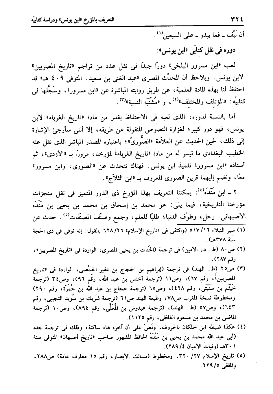 يمكننا التعريف بهذا المؤرخ ذى الدور المتميز فى نقل منجزات مؤرخنا التاريخية، فيما يلى: هو محمد بن إسحاق بن محمد بن يحيى بن منده الأصبهانى. رحل، وطوّف الدنيا؛ طلبا للعلم، وجمع وصنّف المصنّفات «5» . حدث عن
