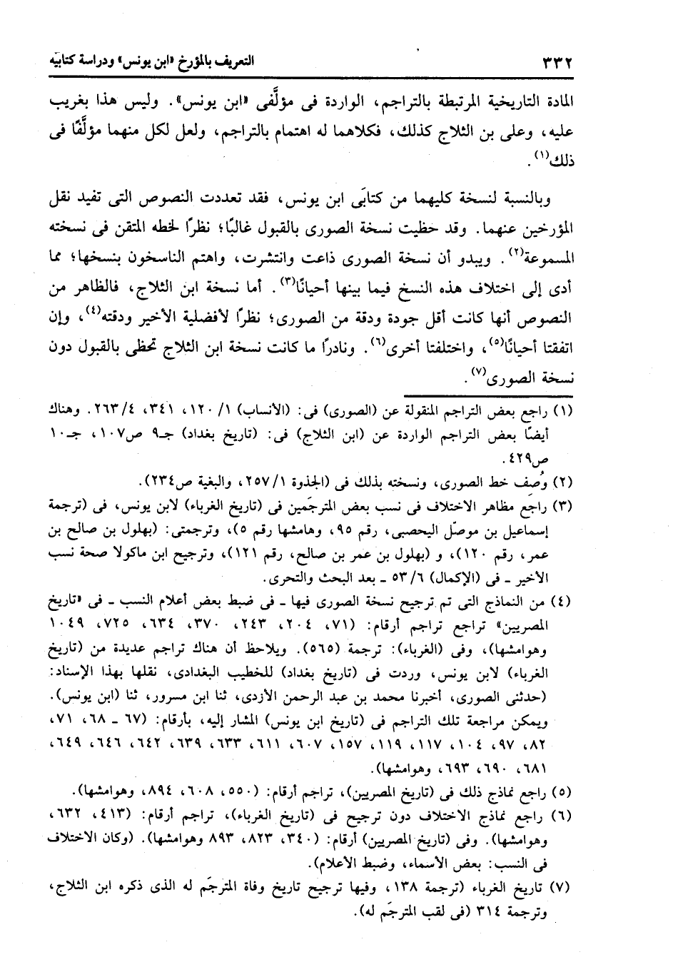 المادة التاريخية المرتبطة بالتراجم، الواردة فى مؤلّفى «ابن يونس» . وليس هذا بغريب عليه، وعلى بن الثلاج كذلك، فكلاهما له اهتمام بالتراجم، ولعل لكل منهما مؤلّفا فى ذلك «1» .