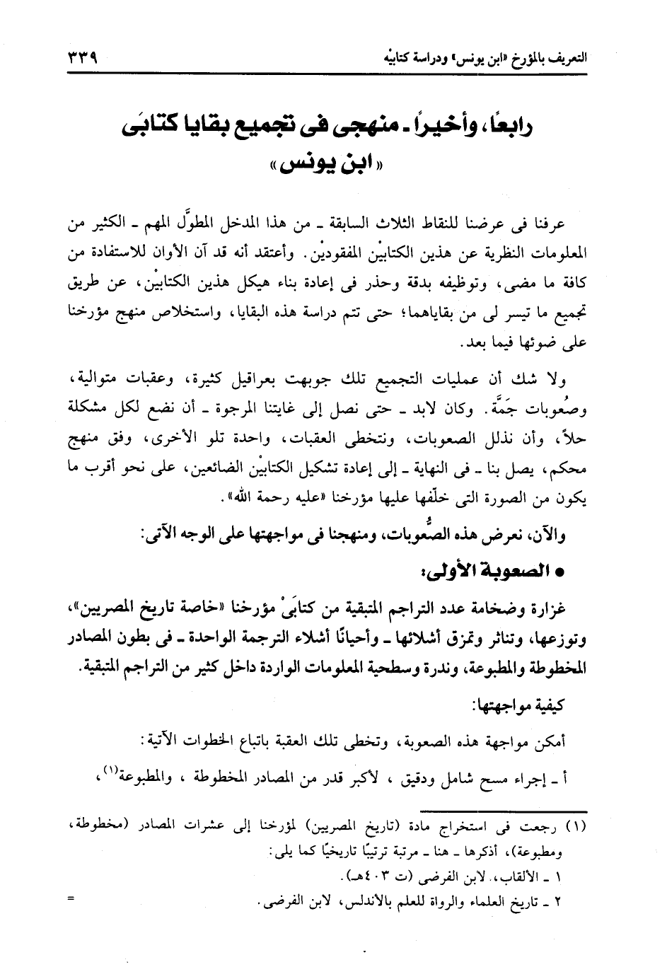 رابعا، وأخيرا- منهجى فى تجميع بقايا كتابى «ابن يونس»