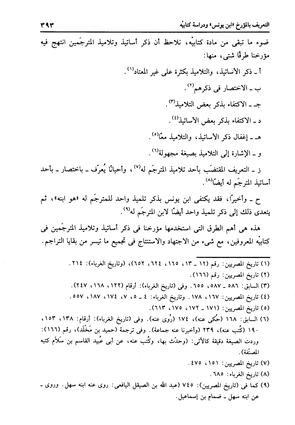 هذه هى أهم الطرق التى استخدمها مؤرخنا فى ذكر أساتيذ وتلاميذ المترجمين فى كتابيه المعروفين، مع شىء من الاجتهاد والاستنتاج فى تجميع ما تيسر من بقايا التراجم.