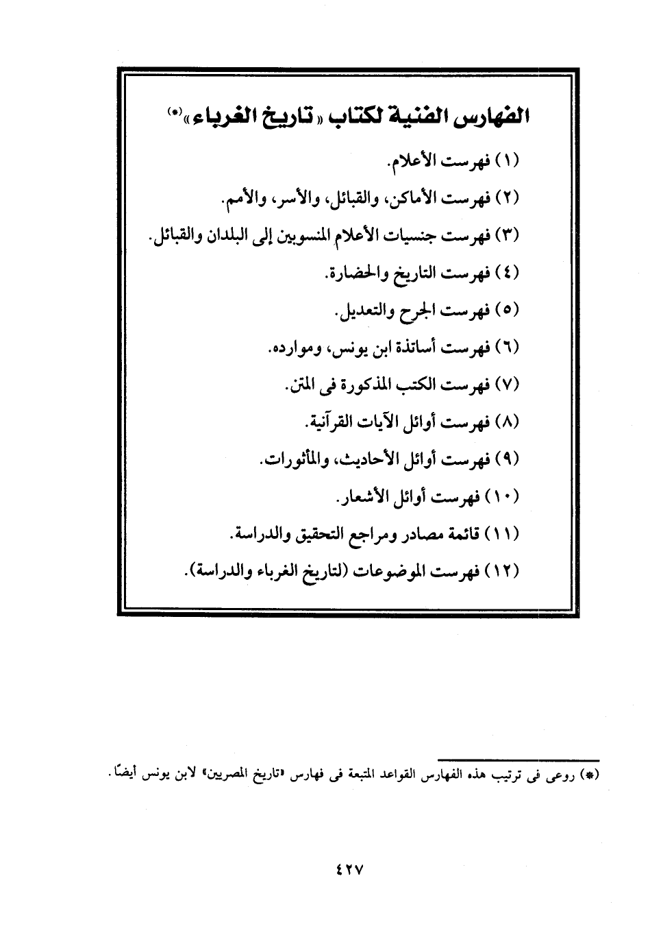 الفهارس الفنية لكتاب «تاريخ الغرباء» «1»