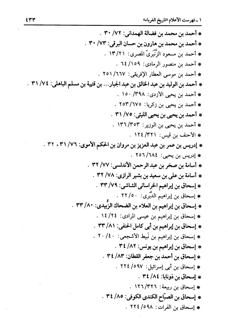 * إسحاق بن إبراهيم بن العلاء بن الضحاك الزّبيدى: 80/33.