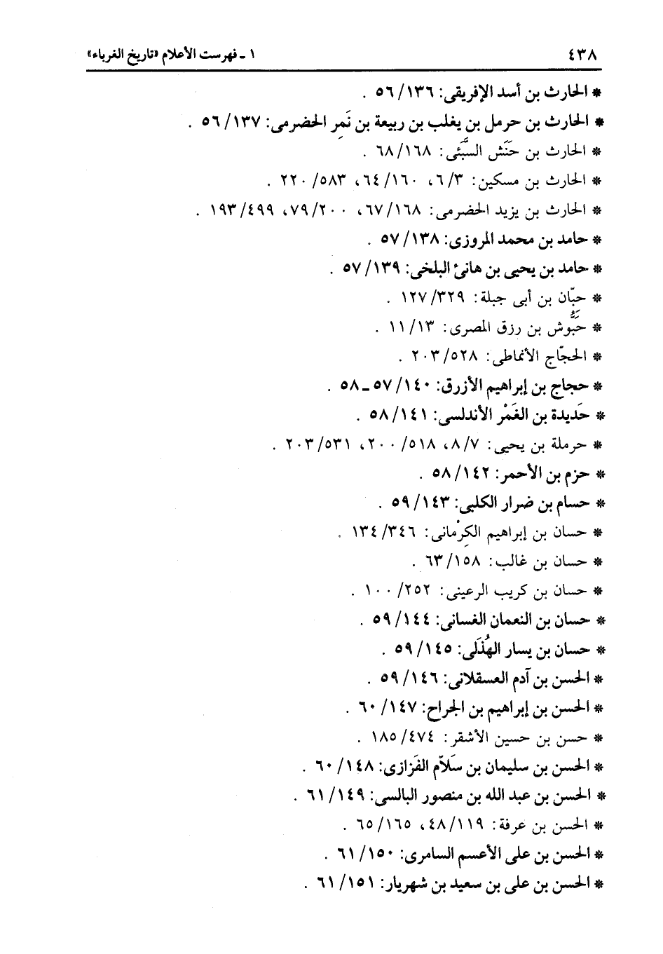 * الحارث بن يزيد الحضرمى: 168/67، 200/79، 499/193.