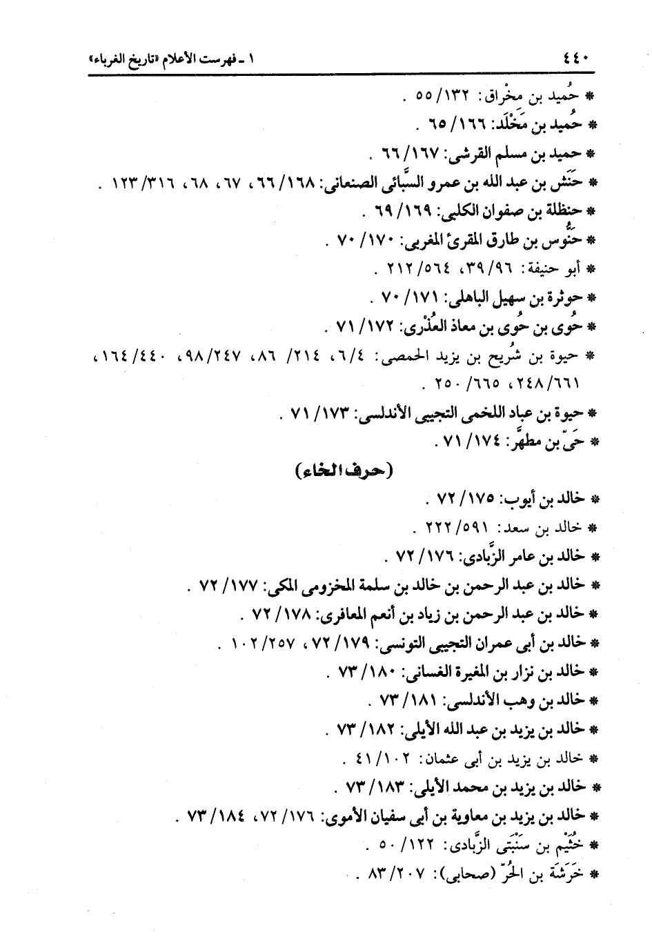 (حرف الخاء) * خالد بن أيوب: 175/72.