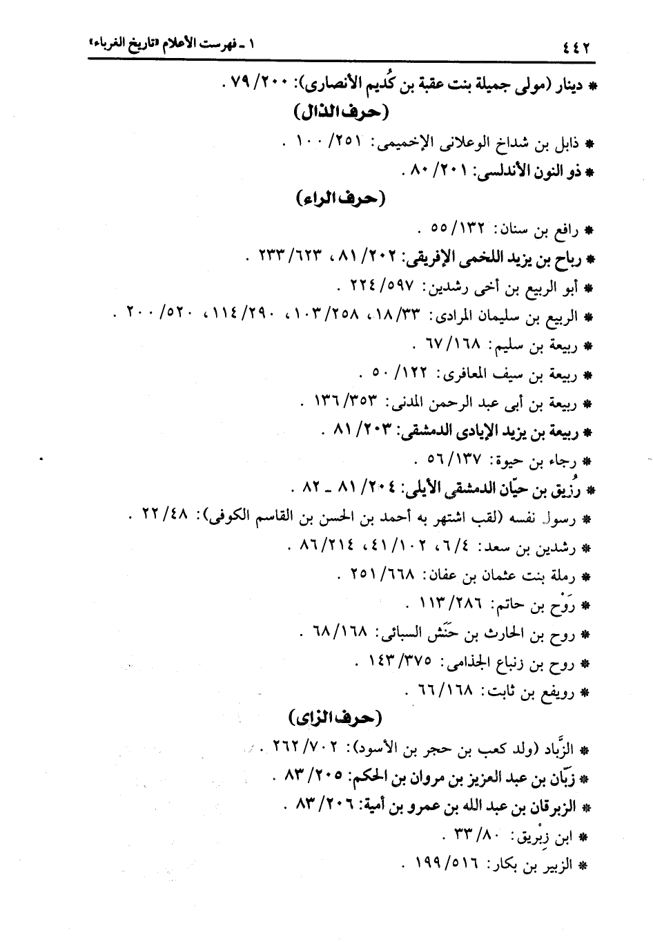 (حرف الزاى) * الزّباد (ولد كعب بن حجر بن الأسود) : 702/262.