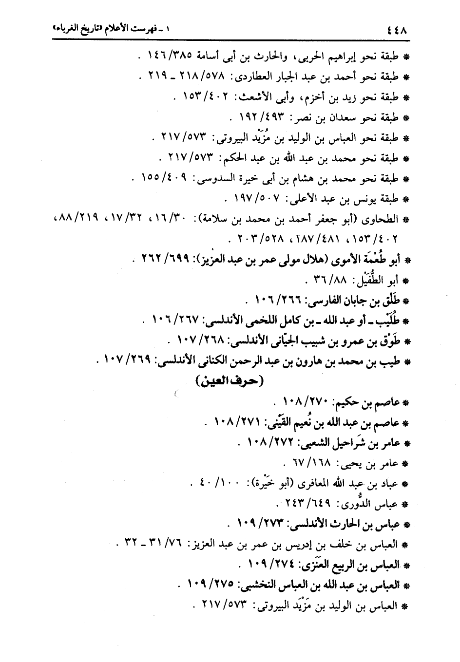 * طبقة نحو العباس بن الوليد بن مزيد البيروتى: 573/217.