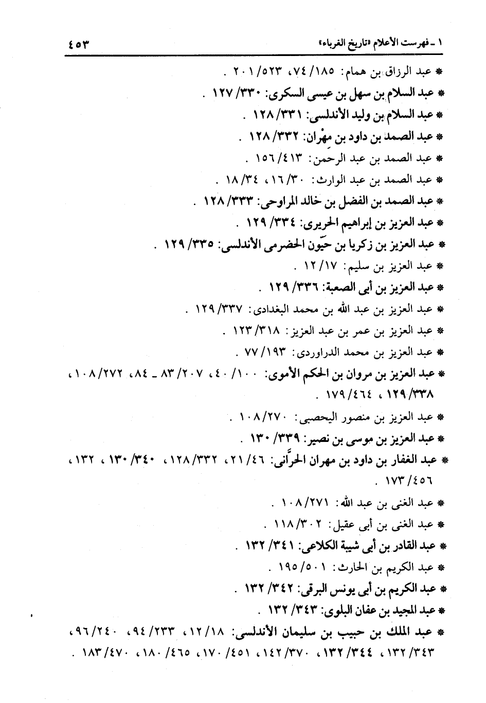 * عبد الملك بن حبيب بن سليمان الأندلسى: 18/12، 233/94، 240/96، 343/132، 344/132، 370/142، 451/170، 465/180، 470/183.