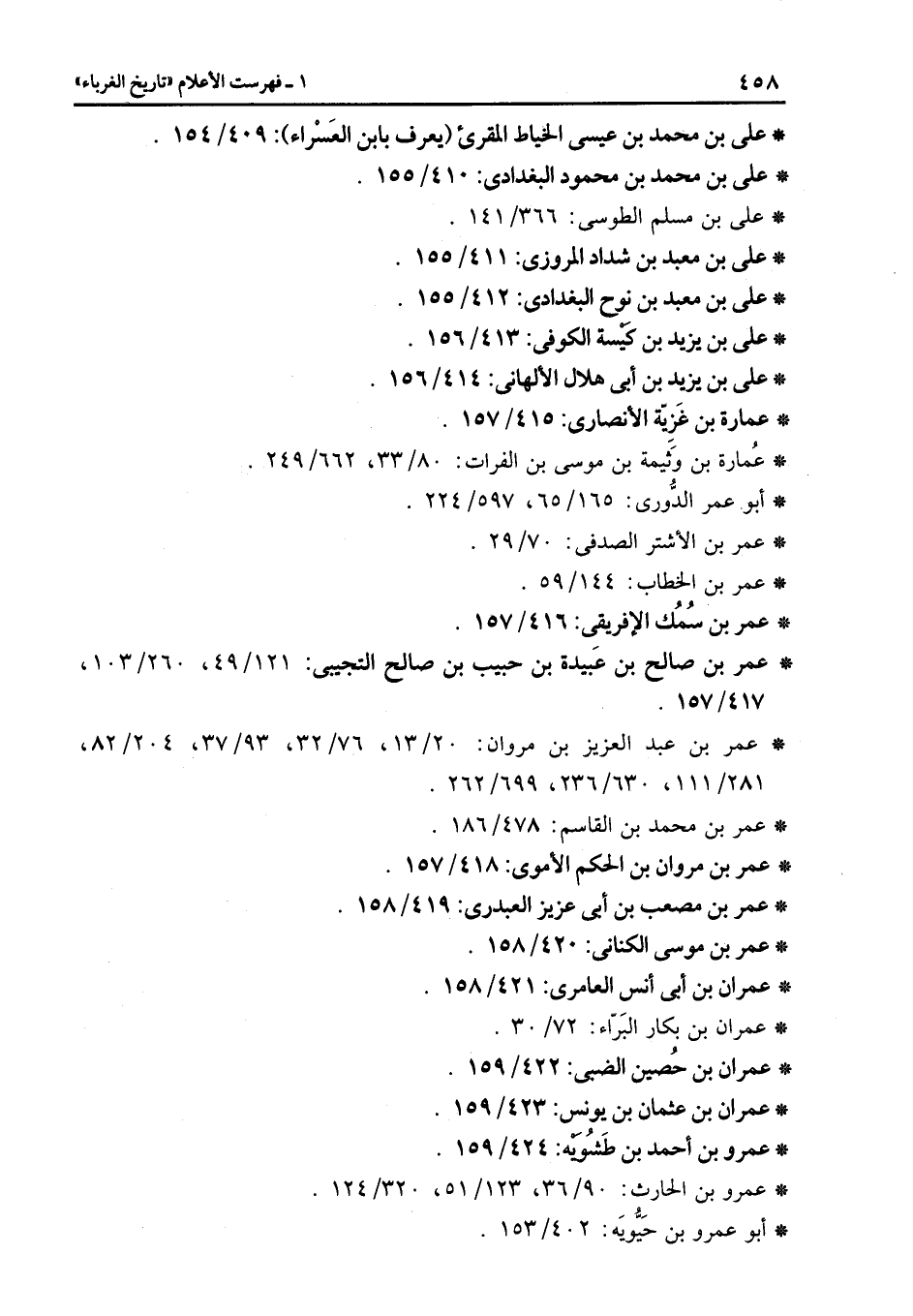 * عمران بن أبى أنس العامرى: 421/158.