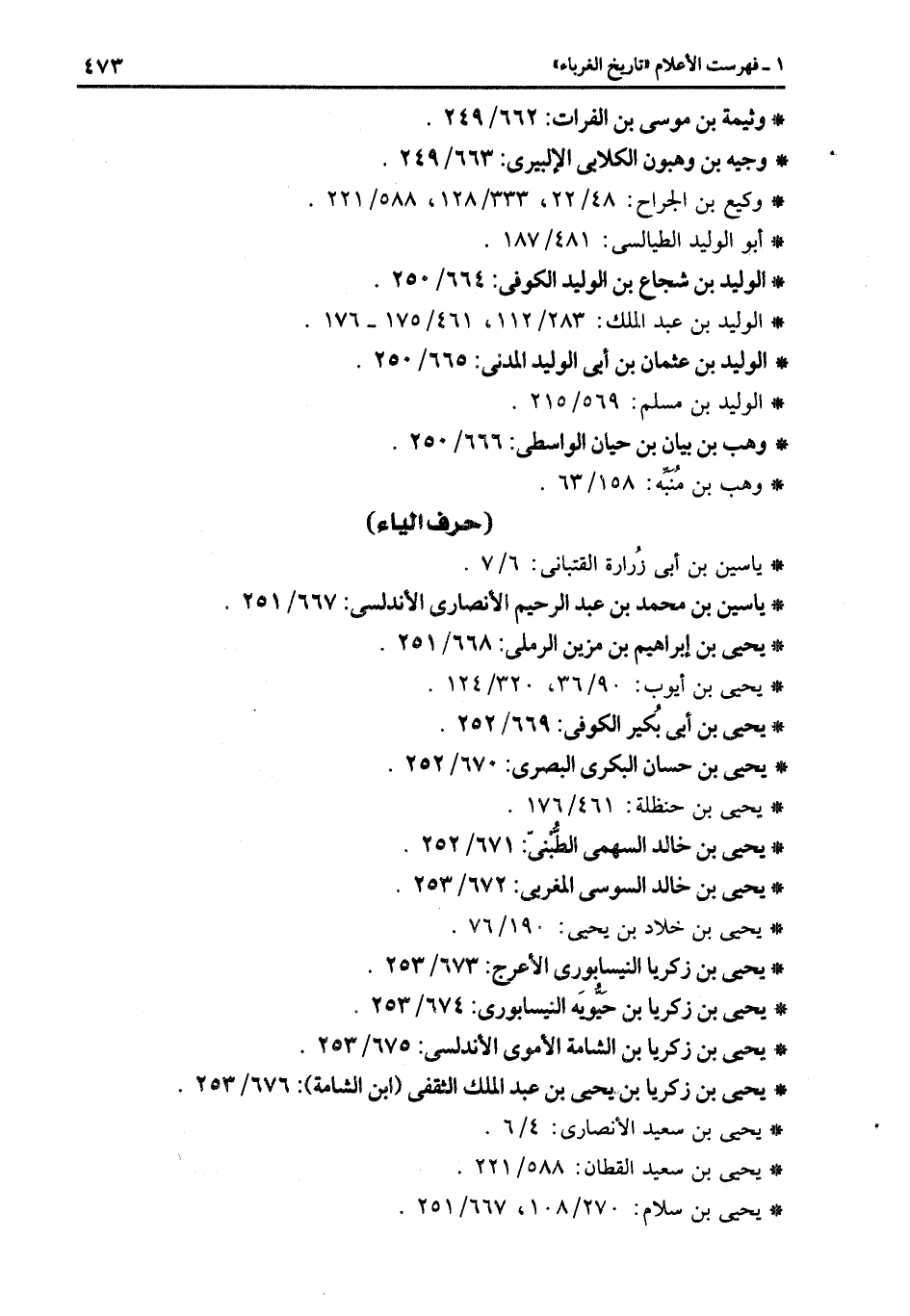(حرف الياء) * ياسين بن أبى زرارة القتبانى: 6/7.
