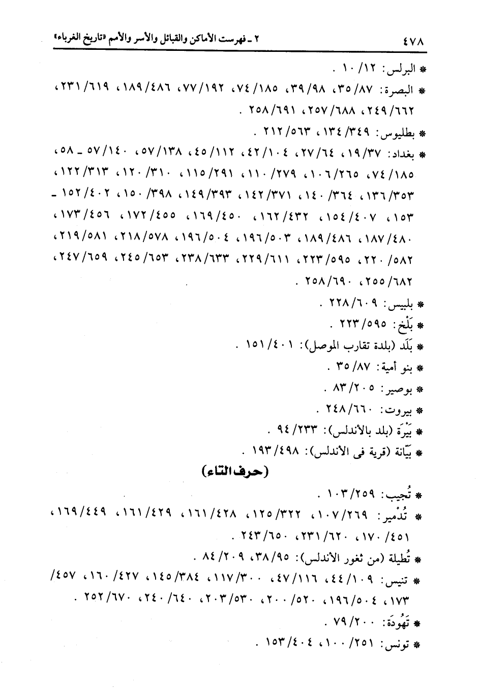* البصرة: 87/35، 98/39، 185/74، 192/77، 486/189، 619/231، 662/249، 688/257، 691/258.