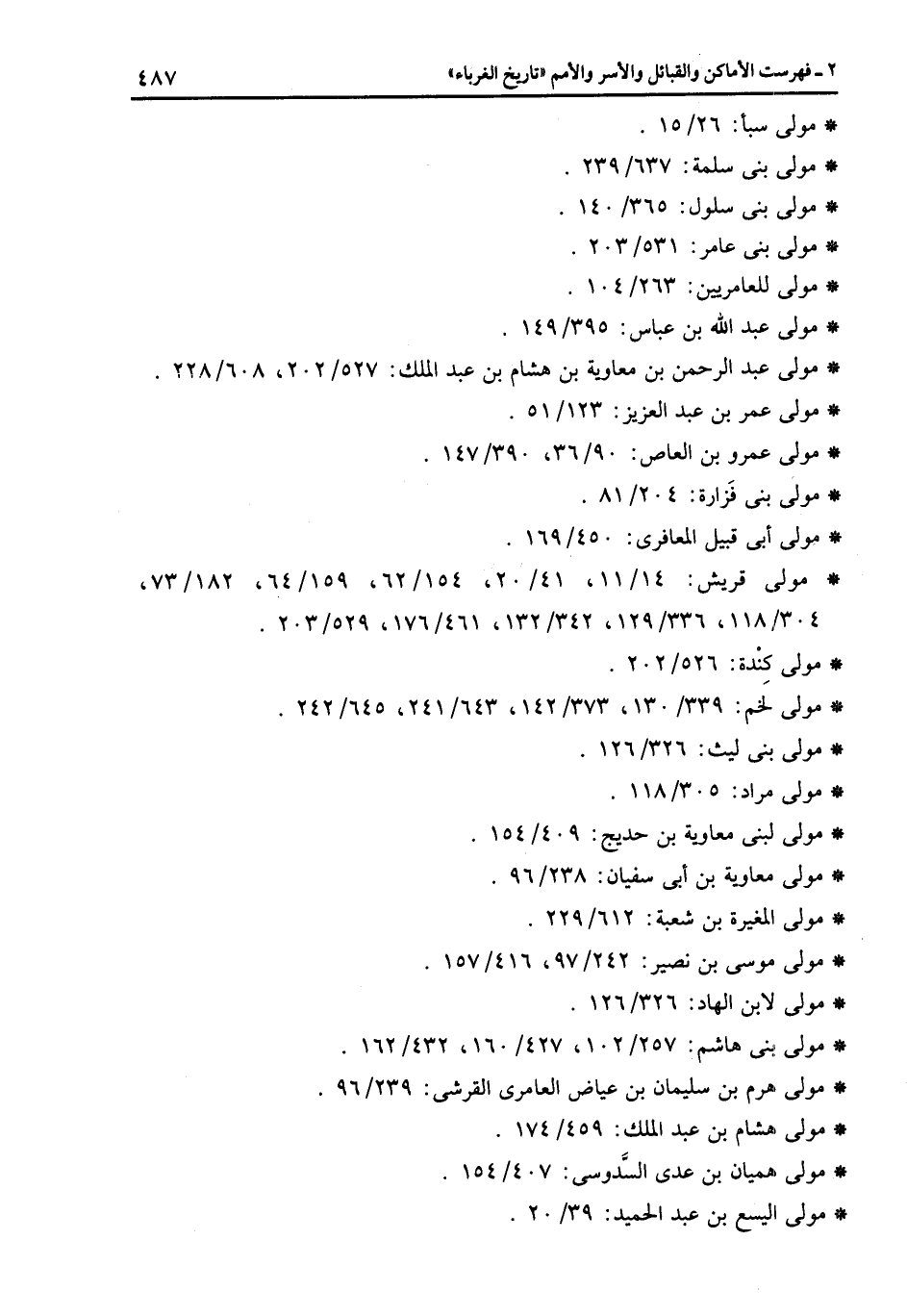 * مولى قريش: 14/11، 41/20، 154/62، 159/64، 182/73، 304/118، 336/129، 342/132، 461/176، 529/203.