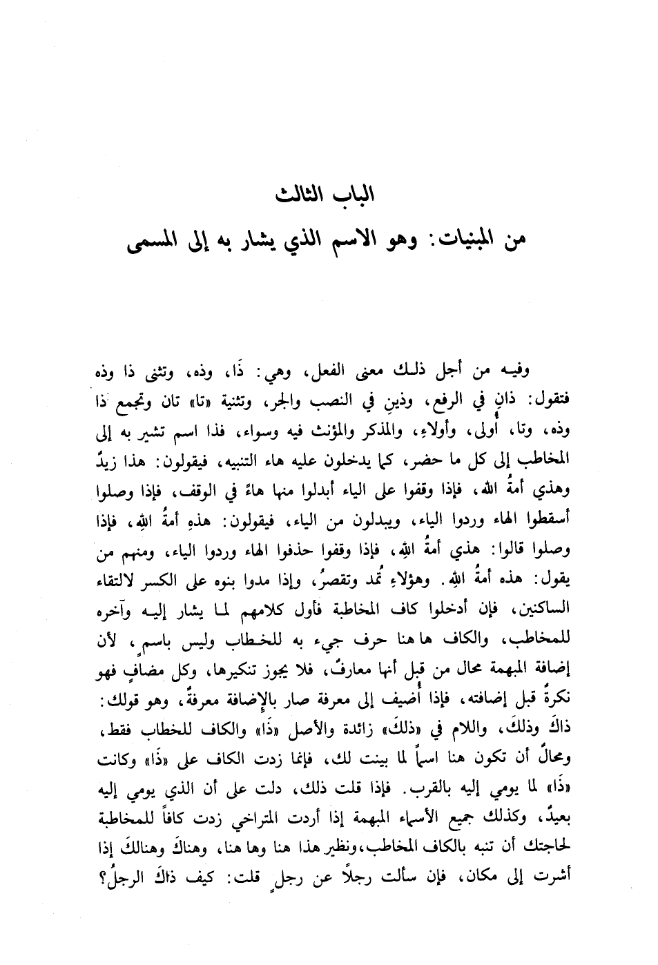 الباب الثالث من المبنيات: وهو الاسم الذي يشار به إلى المسمى.