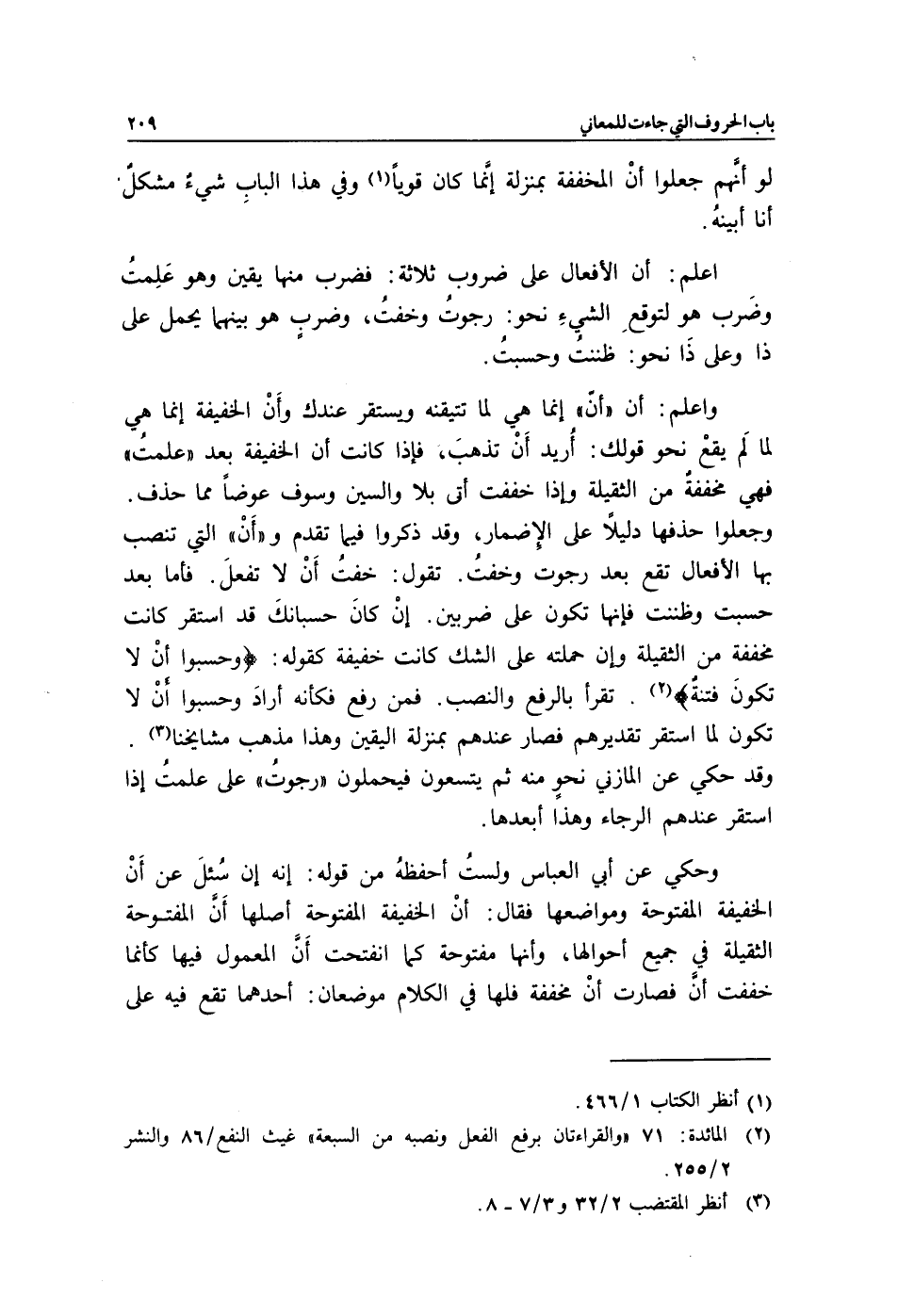 لو أنَّهم جعلوا أن المخففة بمنزلة إنَّما كان قويا1 وفي هذا البابِ شيءٌ مشكلٌ أنا أبينهُ.