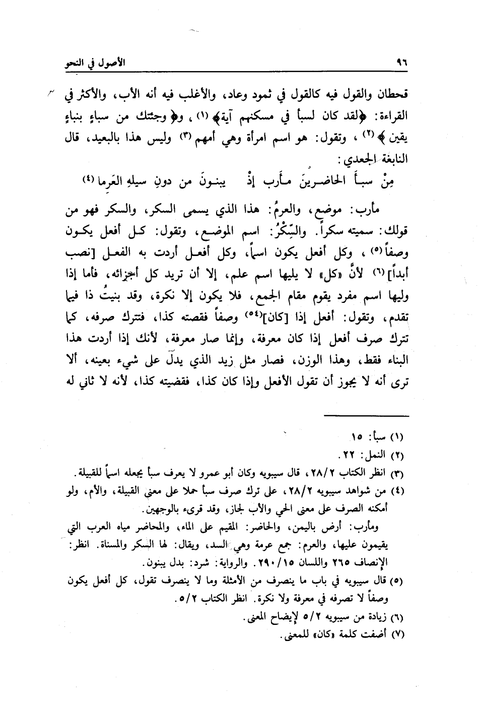 4 من شواهد سيبويه 2/ 28، على ترك صرف سبأ حملا على معنى القبيلة والأم، ولو أمكنه الصرف على معنى الحي والأب لجاز، وقد قرئ بالوجهين.