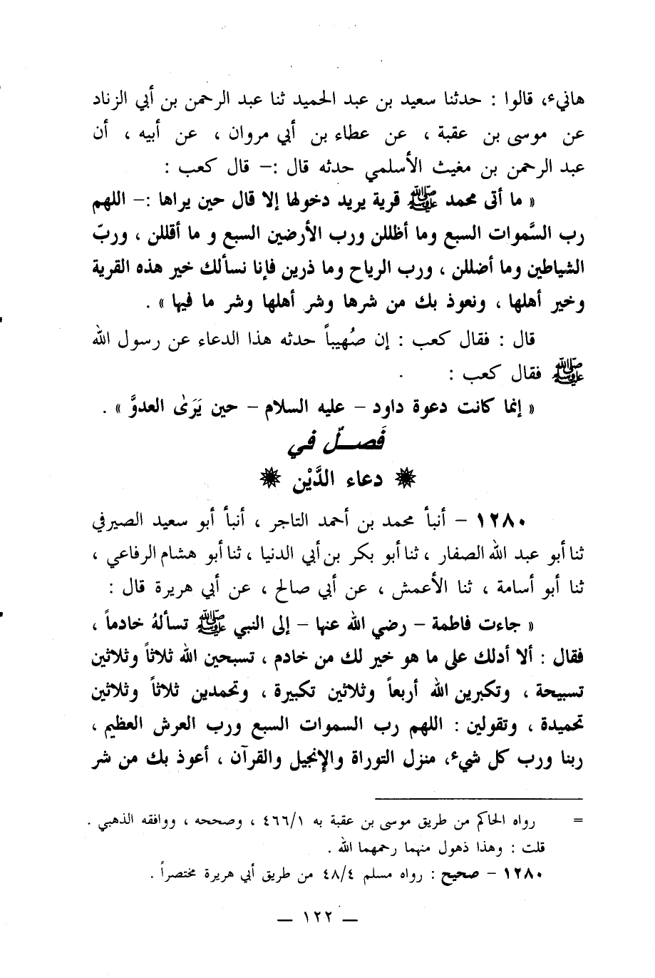 1280- أنبأ محمد بن أحمد التاجر، أنبأ أبو سعيد الصيرفي ثنا أبو عبد الله الصفار، ثنا أبو بكر بن أبي الدنيا، ثنا أبو هشام الرفاعي، ثنا أبو أسامة، ثنا الأعمش، عن أبي صالح، عن أبي هريرة قال: