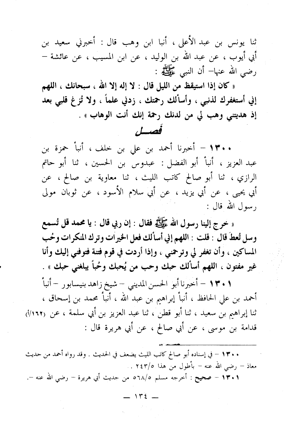 1300- أخبرنا أحمد بن علي بن خلف، أنبأ حمزة بن عبد العزيز، أنبأ أبو الفضل: عبدوس بن الحسين، ثنا أبو حاتم الرازي، ثنا أبو صالح كاتب الليث، ثنا معاوية بن صالح، عن أبي يحيى، عن أبي يزيد، عن أبي سلام الأسود، عن ثوبان مولى رسول الله قال:
