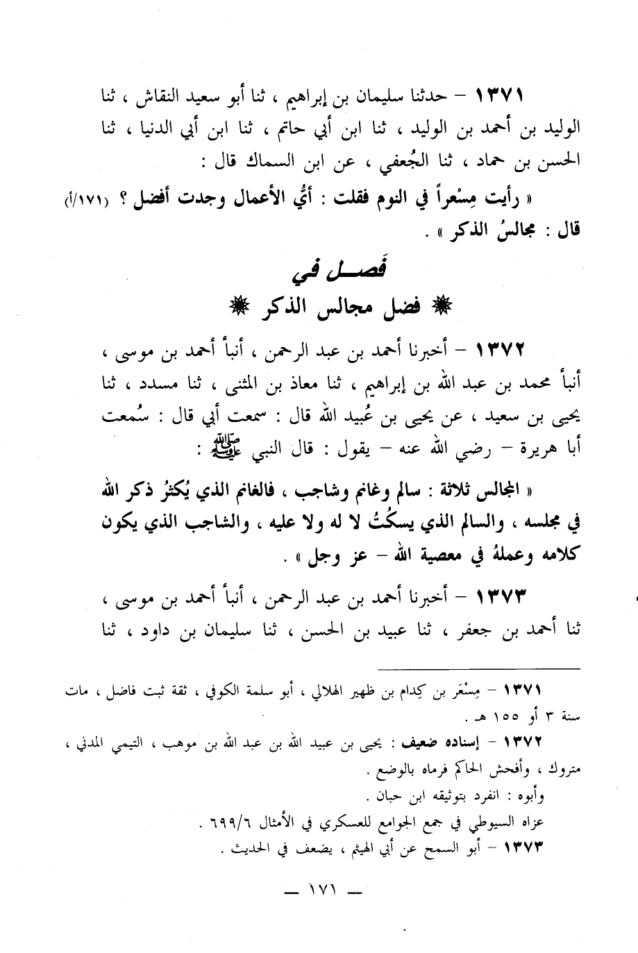 ((رأيت مسعراً في النوم فقلت: أي الأعمال وجدت أفضل؟ قال: مجالس الذكر)) .