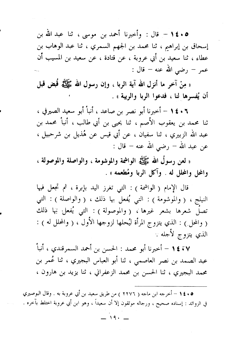 1406- أخبرنا أبو نصر بن صاعد، أنبأ أبو سعيد الصيرفي، ثنا محمد بن يعقوب الأصم، ثنا يحيى بن أبي طالب، أنبأ محمد بن عبد الله الزبيري، ثنا سفيان، عن أبي قيس عن هذيل بن شرحبيل، عن عبد الله -رضي الله عنه- قال: