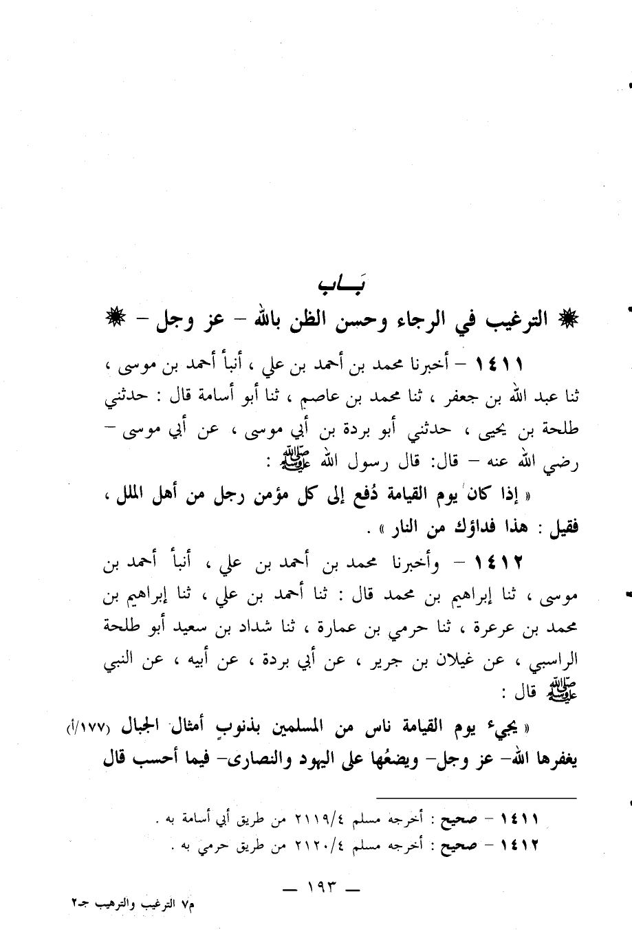 باب الترغيب في الرجاء وحسن الظن بالله –عز وجل-
