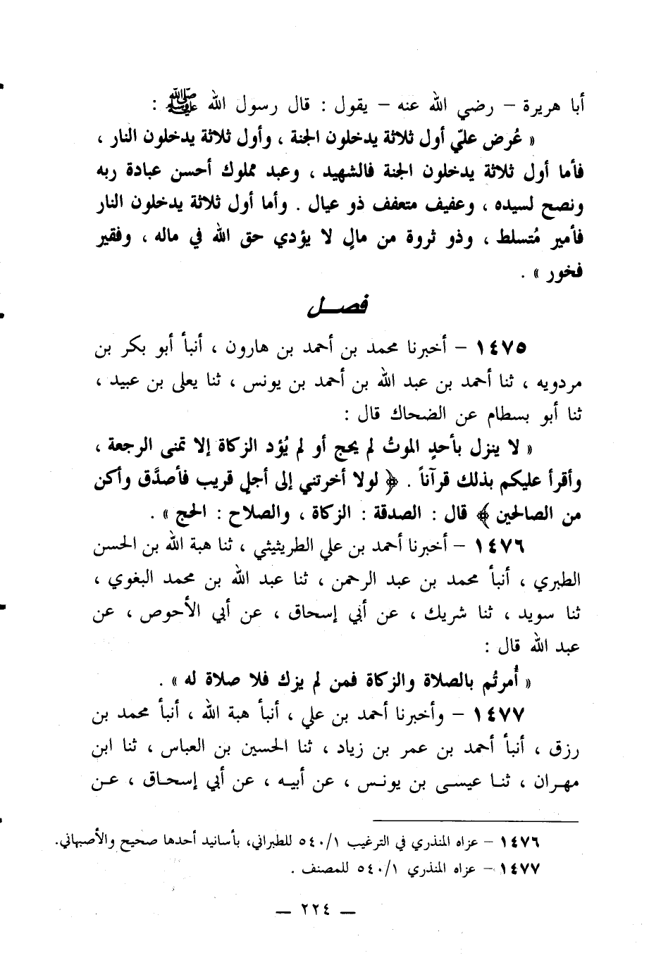 1476- أخبرنا أحمد بن علي الطريثيثي، ثنا هبة الله بن الحسن الطبري، أنبأ محمد بن عبد الرحمن، ثنا عبد الله بن محمد البغوي، ثنا سويد، ثنا شريك، عن أبي إسحاق، عن أبي الأحوص، عن عبد الله قال: